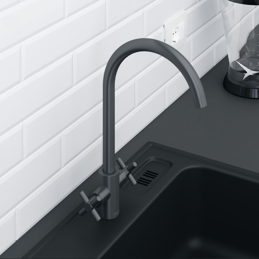 Черный цвет - это тренд который останется с нами еще на долгие годы. Матовая поверхность минимизирует загрязнение на поверхности смесителя больше никаких разводов от воды! Смеситель впишется в любой интерьер благодаря разнообразию цветовой палитры: Nickel Graphite и Black. Усовершенствованные ручки крестообразной формы удобны в управлении а также характеризуются плавностью хода благодаря керамическому картриджу.