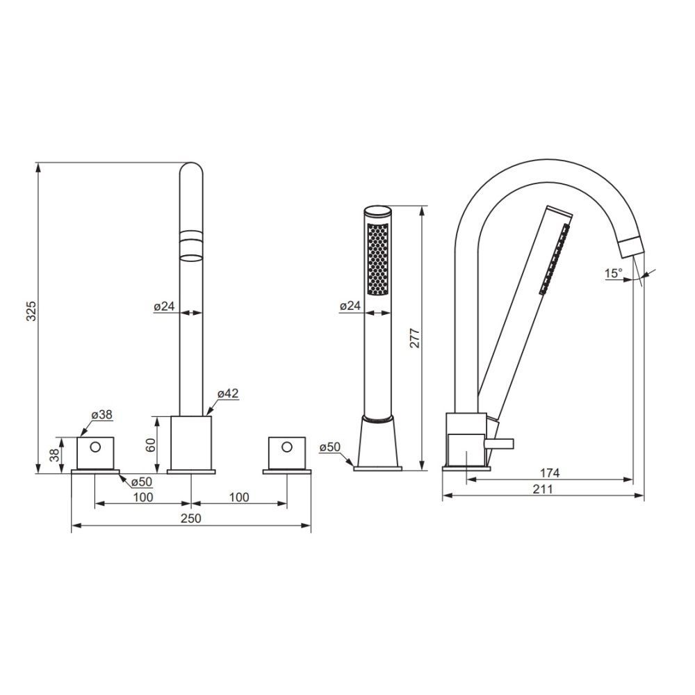 4х-секционный смеситель монтируемый на борт ванны – это не только яркий акцент но и идеальное решение для отдельностоящей ванны. А ручки и лейка в трендовой форме стика привнесут особую эстетику в интерьер ванной комнаты.