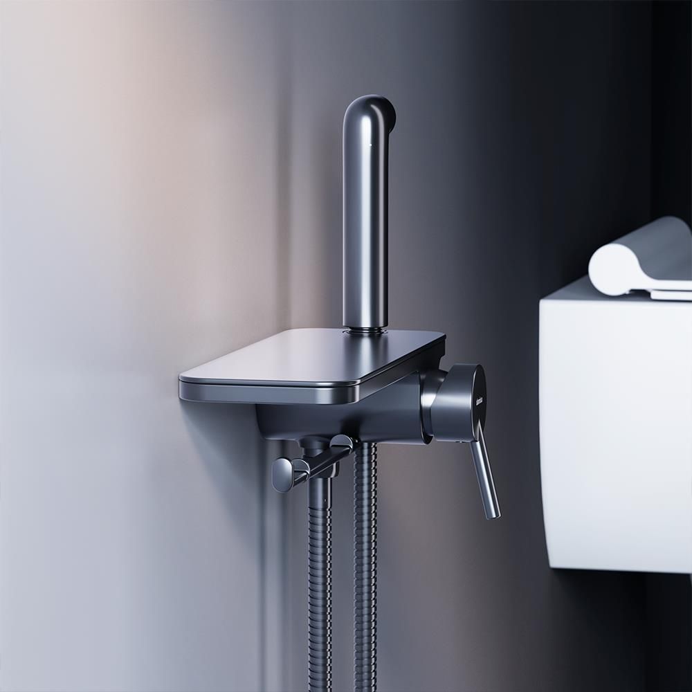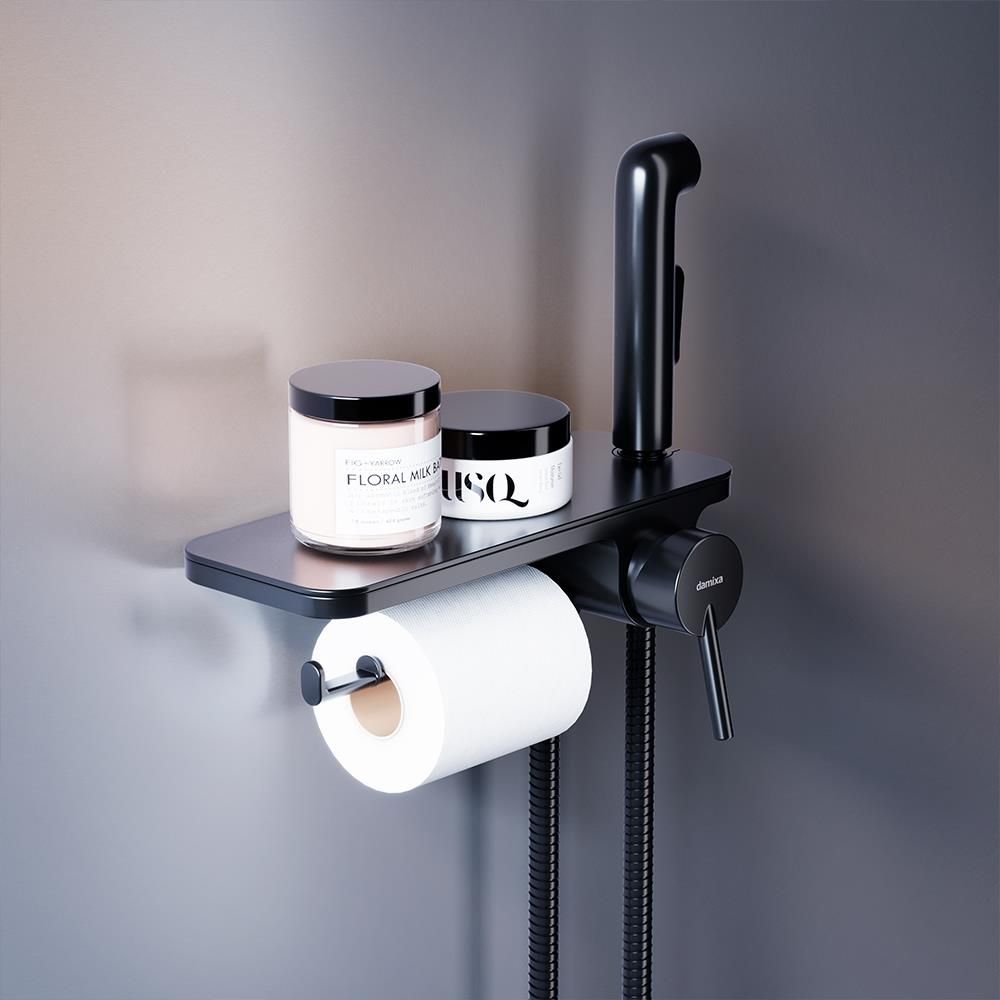 Современное решение для вашего удобства и гигиены теперь в новом исполнении. Матовый черный смеситель с гигиеническим душем отличается простотой и комфортом в использовании а еще он выглядит невероятно стильно. Самое практичное гигиеническое решение: смеситель оснащен удобной полочкой на которой поместится все что необходимо под рукой и держателем для туалетной бумаги.