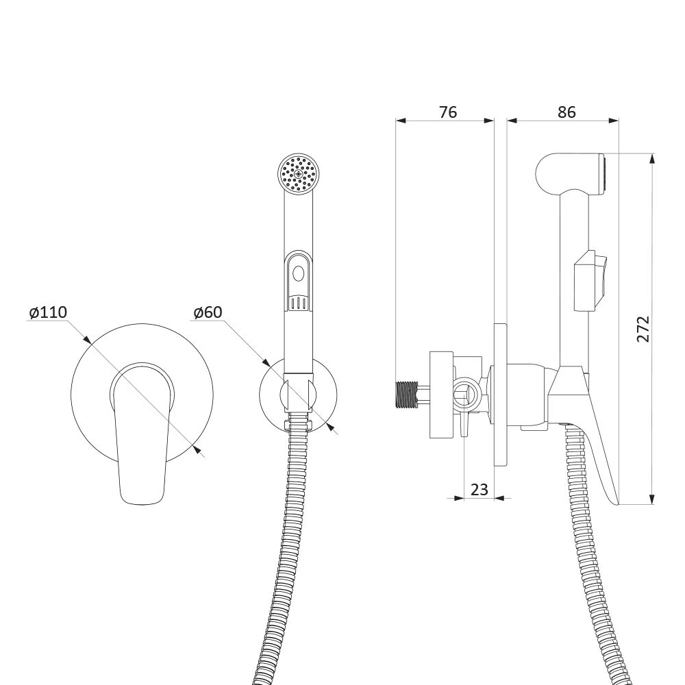 - С заботой о чистоте: к смесителю прилагается функциональный гигиенический душ и шланг для душа.