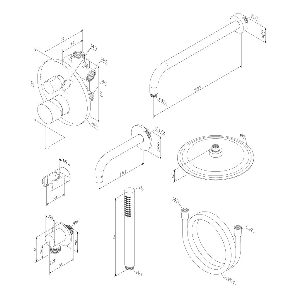 Диаметр ручного душа (мм)