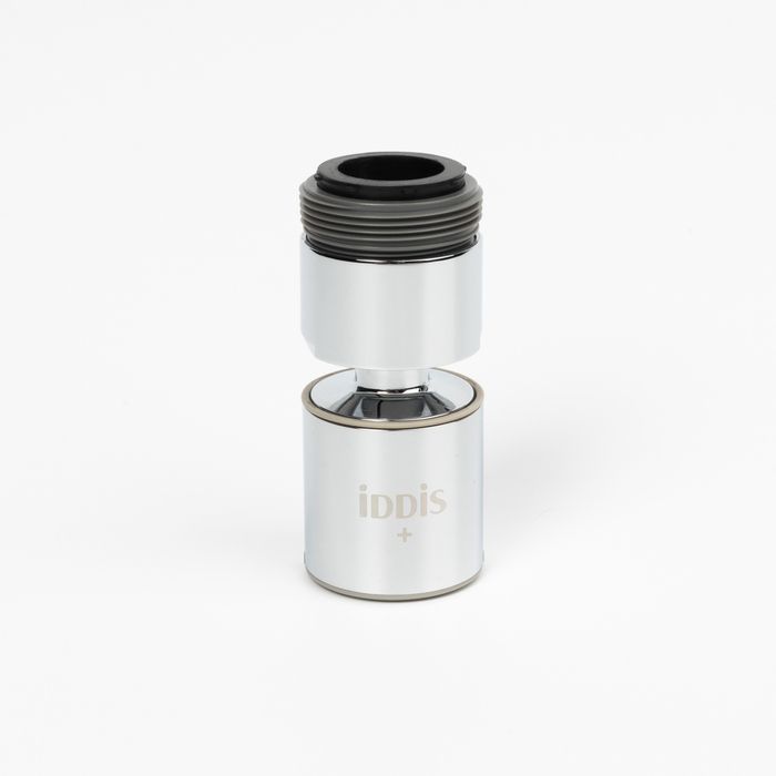 Шарнирный пластиковый аэратор IDDIS® имеет два режима – обычная аэрированная струя и душевая. Режимы переключаются поворотом аэратора. Аэратор подвижный - поворот вокруг своей оси 360°, максимальный угол наклона 45°. В комплекте переходник на резьбу М24.