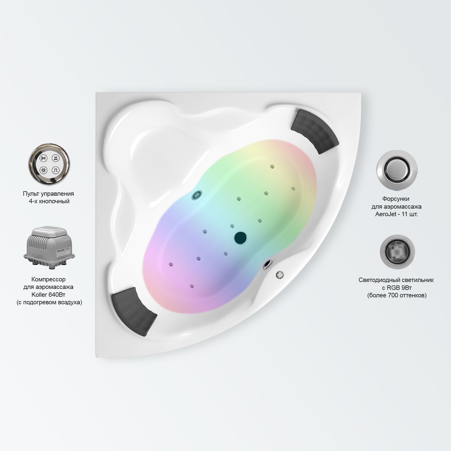 Аэромассажная система выполняет общий массаж тела при помощи сжатого воздуха через маленькие форсунки (нанофорсунки). Форсунки имеют плоскую конструкцию (без выпирающих частей), что не создает дискомфорт, как при принятии ванны, так и во время массажа.