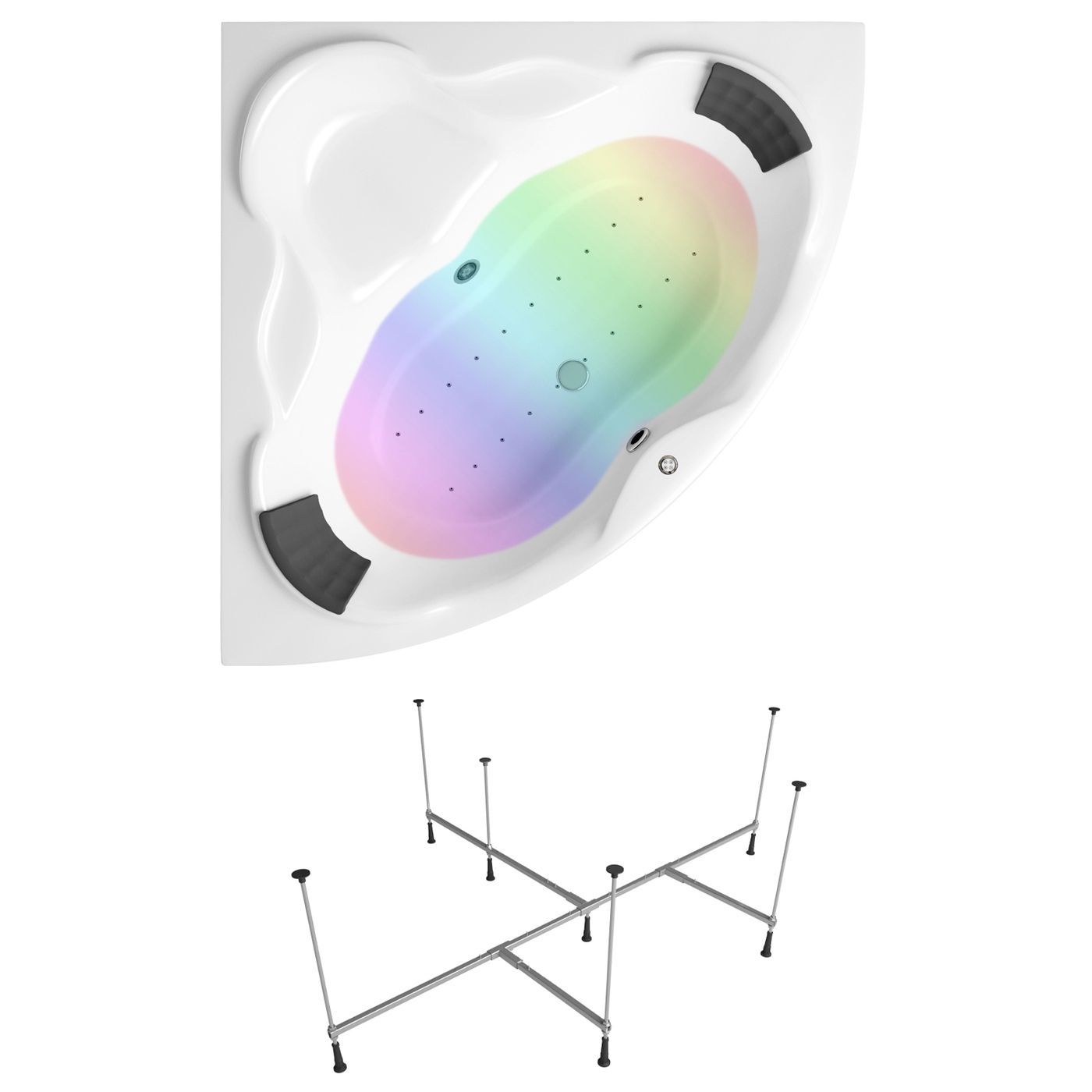 Дополнительно ванна может быть доукомплектована ультра плоскими лицевыми и торцевыми экранами, гидро-, аэро-массажными системами, хромотерапией.