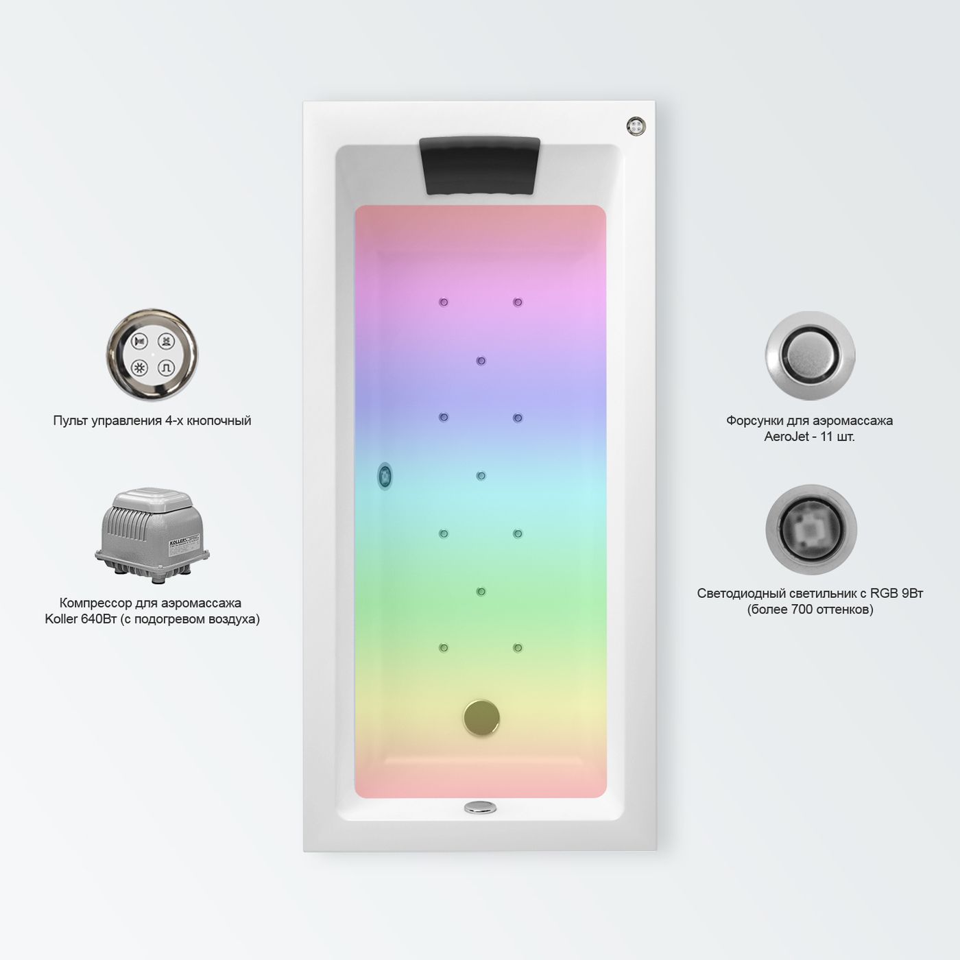 Аэромассажная система выполняет общий массаж тела при помощи сжатого воздуха через маленькие форсунки (нанофорсунки). Форсунки имеют плоскую конструкцию (без выпирающих частей), что не создает дискомфорт, как при принятии ванны, так и во время массажа.