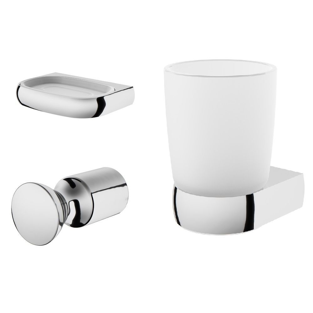 Занимая минимум места в пространстве аксессуары Sensation помогут рационально организовать место для хранения и станут стильными акцентами в интерьере. В комплекте: стеклянная мыльница стеклянный стакан крючок для полотенец.