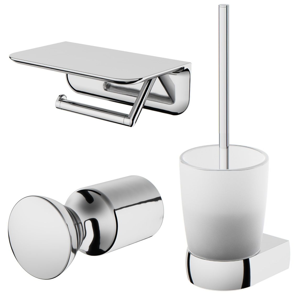 Занимая минимум места аксессуары Sensation помогут рационально организовать пространство и станут стильными акцентами в интерьере. В комплекте: крючок для полотенец держатель для туалетной бумаги с полкой стойка с туалетной щеткой.