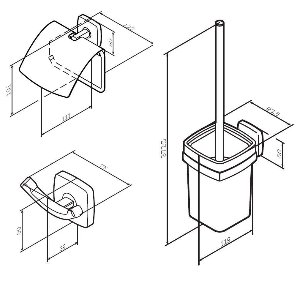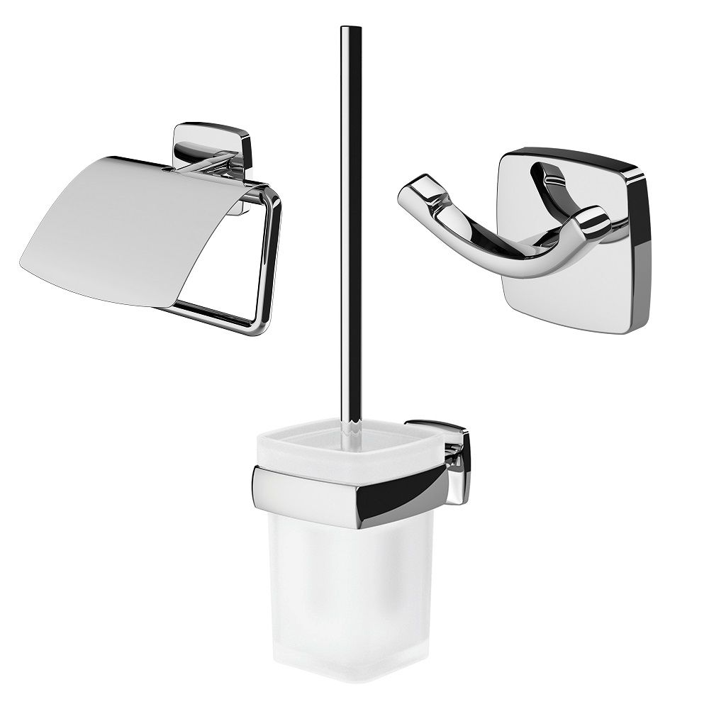 Занимая минимум места в пространстве аксессуары Gem помогут рационально организовать место для хранения и станут стильными акцентами в интерьере. В комплекте: двойной крючок для полотенец держатель для туалетной бумаги с крышкой стойка с туалетной щеткой.