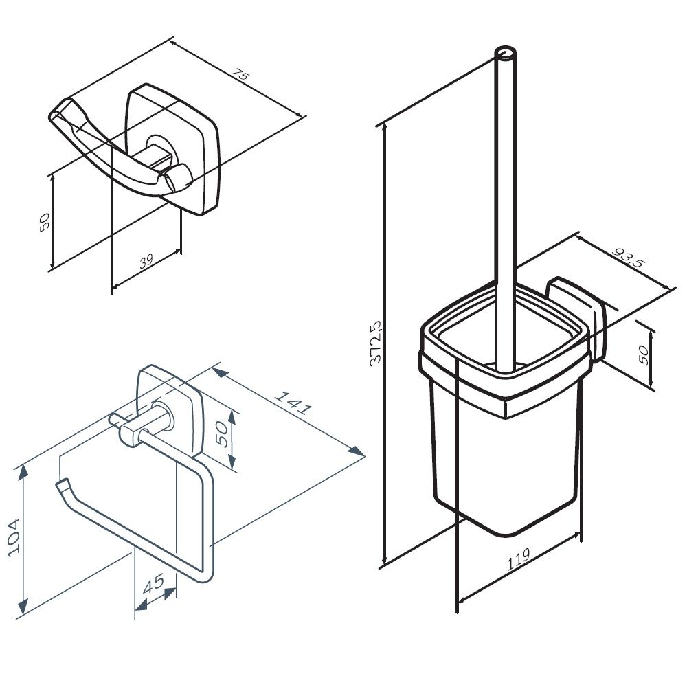 Занимая минимум места в пространстве аксессуары Gem помогут рационально организовать место для хранения и станут стильными акцентами в интерьере. В комплекте: двойной крючок для полотенец держатель для туалетной бумаги стойка с туалетной щеткой.