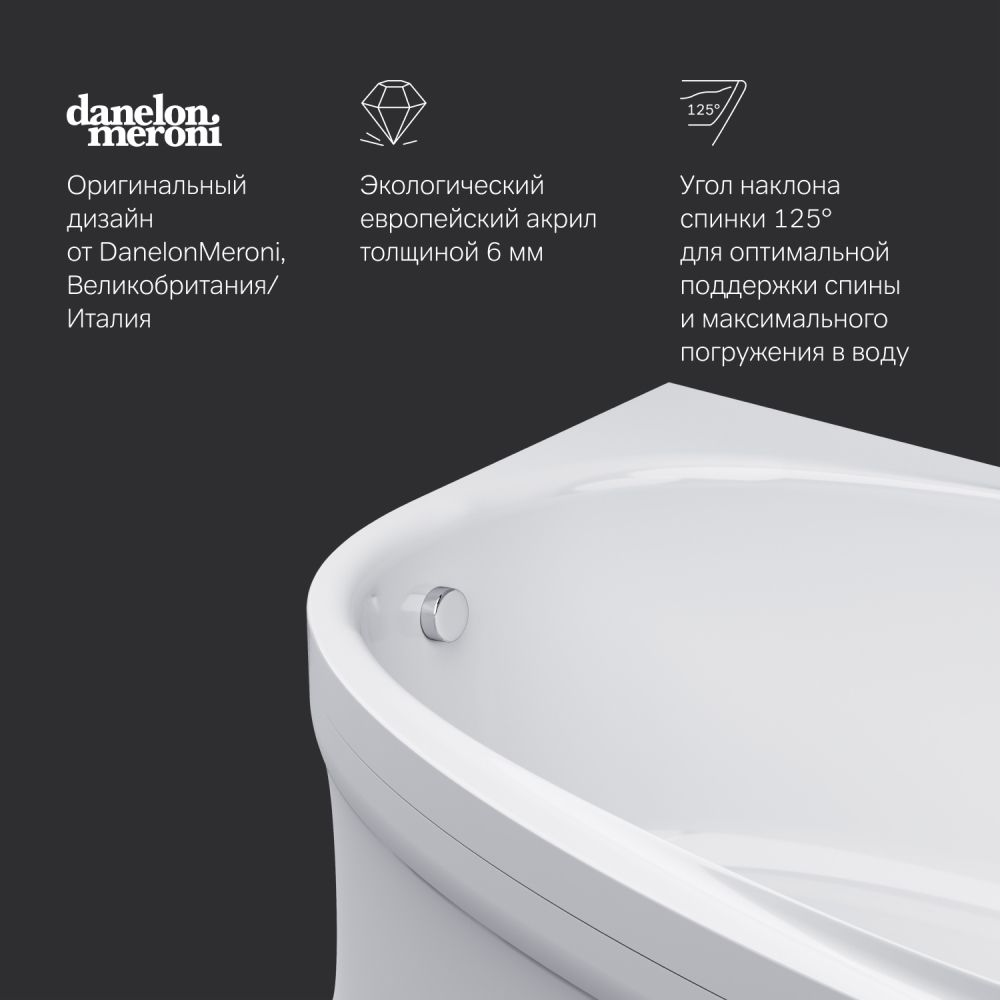 Одна из самых удобных ванн на рынке: угол наклона спинки 125° разработанный совместно с ведущими терапевтами обеспечивает оптимальную поддержку спины и максимальное погружение в воду.