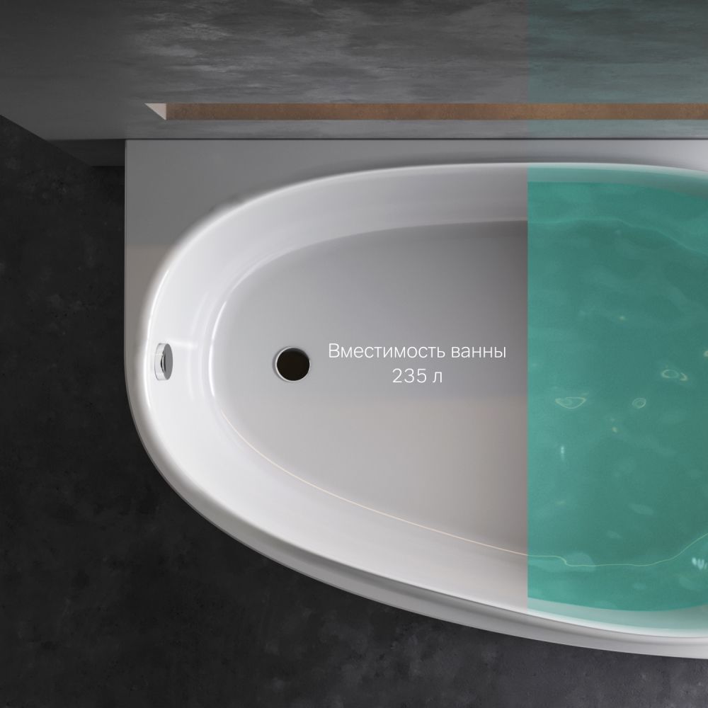 Угловая акриловая ванна AM PM Like 170x110 асимметричная, приставная. Впервые в доступном сегменте: ультра-модный стиль Dynamic Organic — природные формы в сочетании с четкими линиями, доведенными до совершенства человеком. Ванна Like способна стать центром дизайна всей ванной комнаты – не просто утилитарная вещь, а дизайнерский продукт. Изысканные детали: эргономичный подголовник – восходящий тренд в дизайне из премиального сегмента и дополнительное расслабление шеи. Одна из самых удобных ванн на рынке: угол наклона спинки 125 градусов, разработанный совместно с ведущими терапевтами, обеспечивает оптимальную поддержку спины и максимальное погружение в воду. Необычайно вместительна: увеличенный внутренний объем при стандартных внешних габаритах благодаря ультратонким бортам делает процесс принятия ванны комфортным для человека любой комплекции.