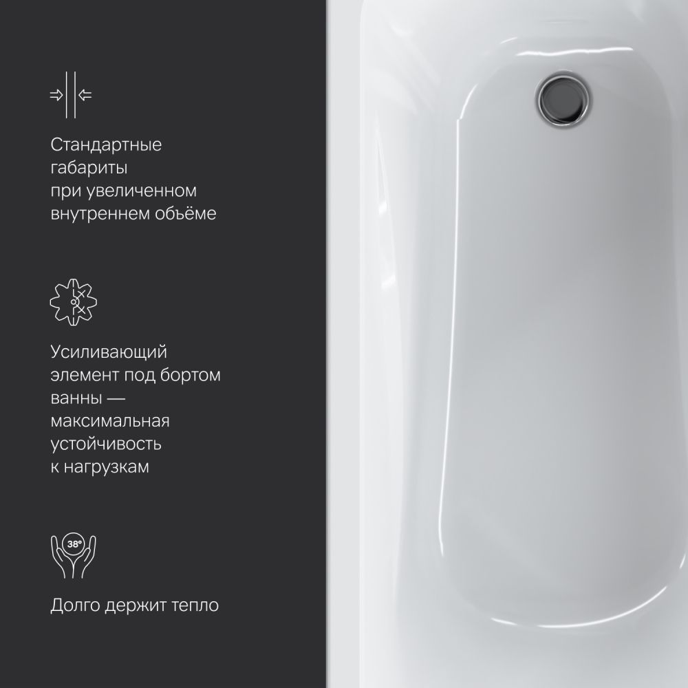 Дополнительные аксессуары для ванн Sense: каркас W76A-150-070W-R фронтальная панель W76A-150-070W-P и слив-перелив W90A-000-OFI - приобретаются отдельно.