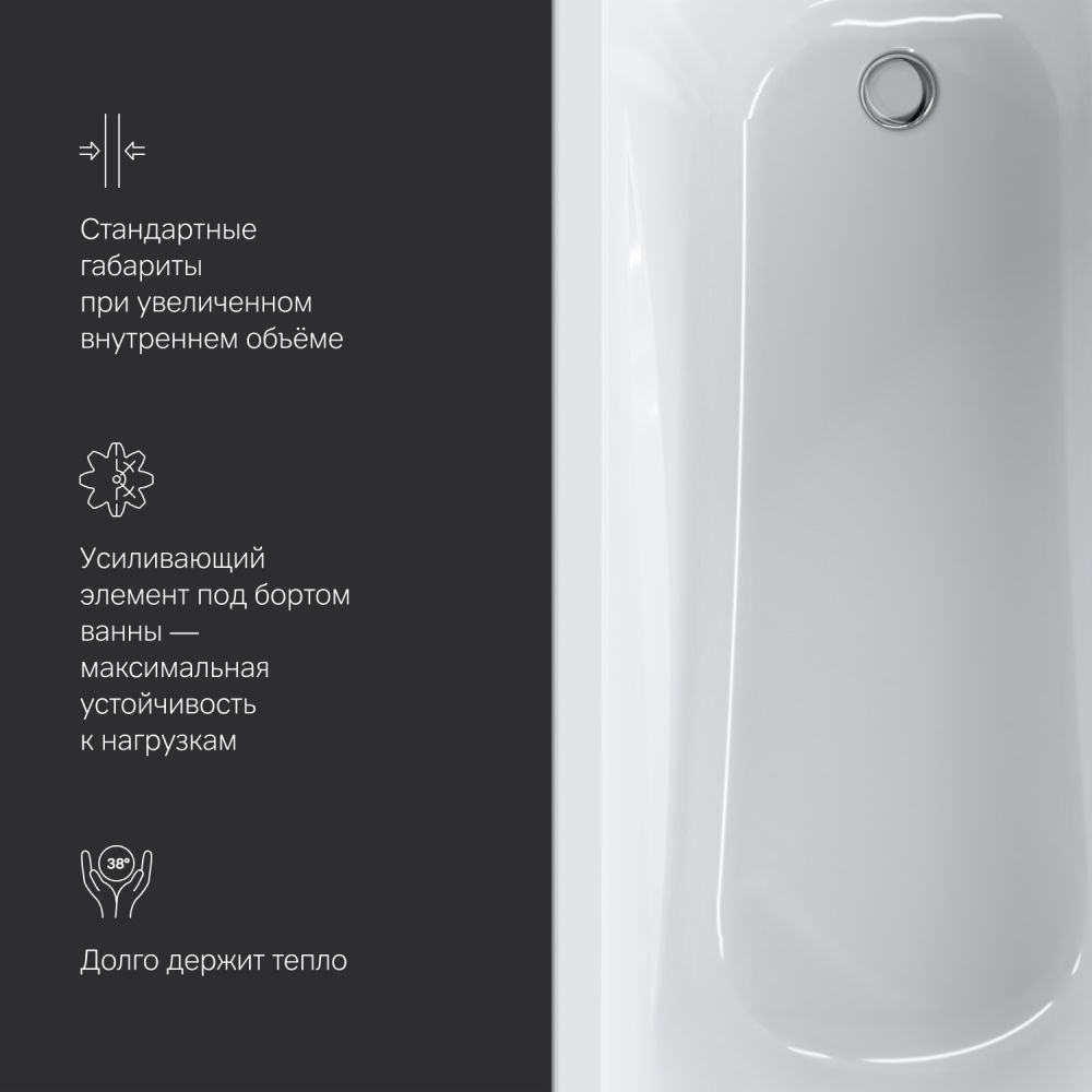 Дополнительные аксессуары для ванн Sense: каркас W76A-170-070W-R фронтальная панель W76A-170-070W-P и слив-перелив W90A-000-OFI - приобретаются отдельно.