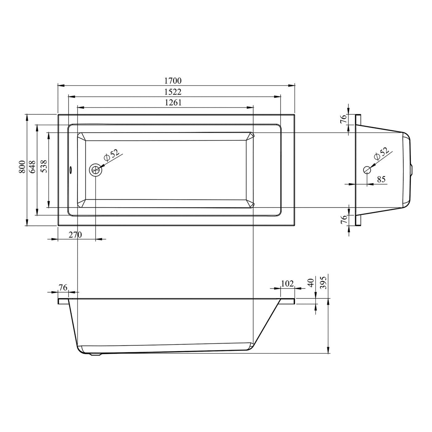 антибактериальное покрытие; максимальная нагрузка: 500 кг; диаметр сливного отверстия: 5,2 см; толщина стенок: 6 мм. |