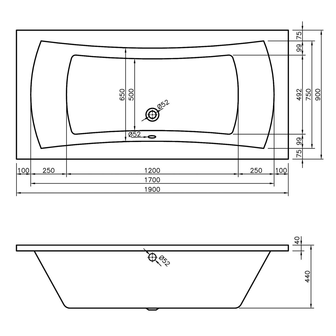 антибактериальное покрытие; максимальная нагрузка: 500 кг; диаметр сливного отверстия: 5,2 см; толщина стенок: 6 мм. |