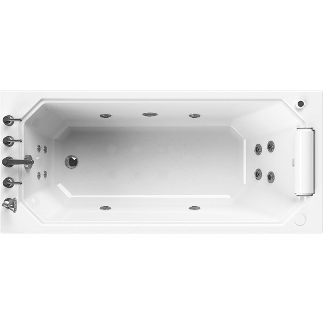 - Гидромассаж: 12 гидромассажных форсунок, контроллер 200 (электронный блок управления, датчик уровня воды, датчик температуры, сенсорный пульт управления).