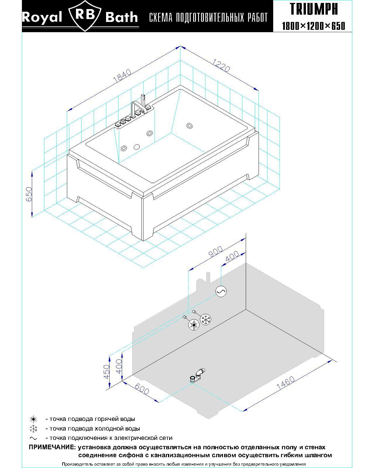 Акриловая ванна Royal Bath Triumph De Luxe 180х120 RB665100DL с гидромассажем, с аэромассажем, с хромотерапией.
