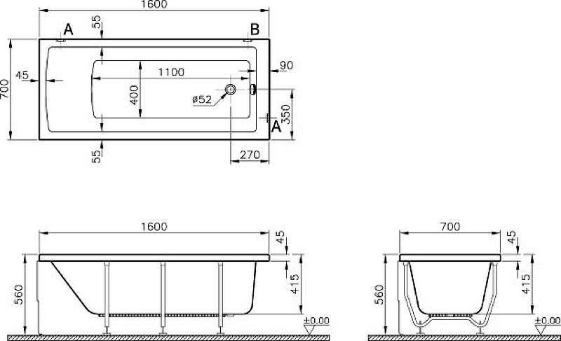 - Ванна выполнена из качественного акрила Lucite - материала с ровной и гладкой поверхностью.