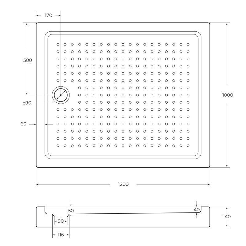 Дополнительная информация: поддон оснащен антискользящим массажным покрытием, в комплект входит сифон с декоративной крышкой Хром, обеспечивающий слив до 25 л. воды в минуту(кроме поддона TRAY-A-AH-120/90-15-W0, к нему сифон приобретается отдельно)