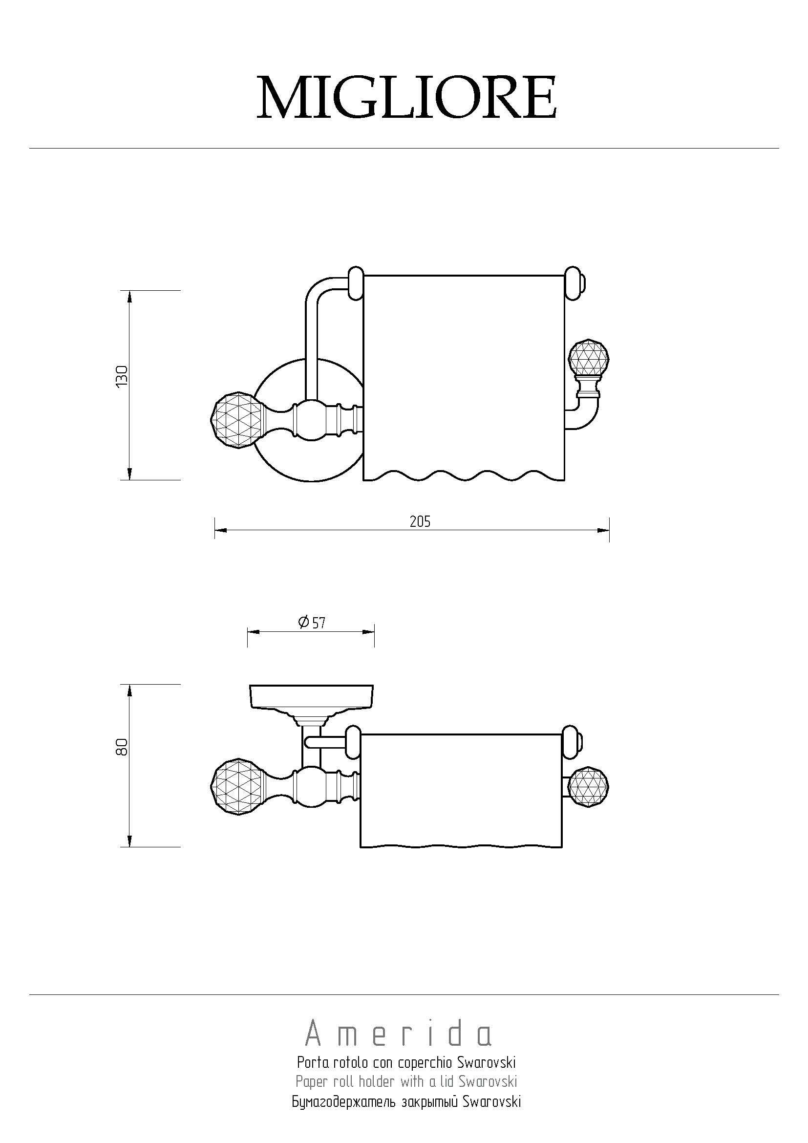 Бумагодержатель закрытый коллекции AMERIDA бренда MIGLIORE — это один из необходимых аксессуаров для ванной комнаты. У бумагодержателя имеется крышка, которая помимо эстетической функции позволяет защитить бумагу от попадания брызг. Аксессуар украшен кристаллами Сваровски.