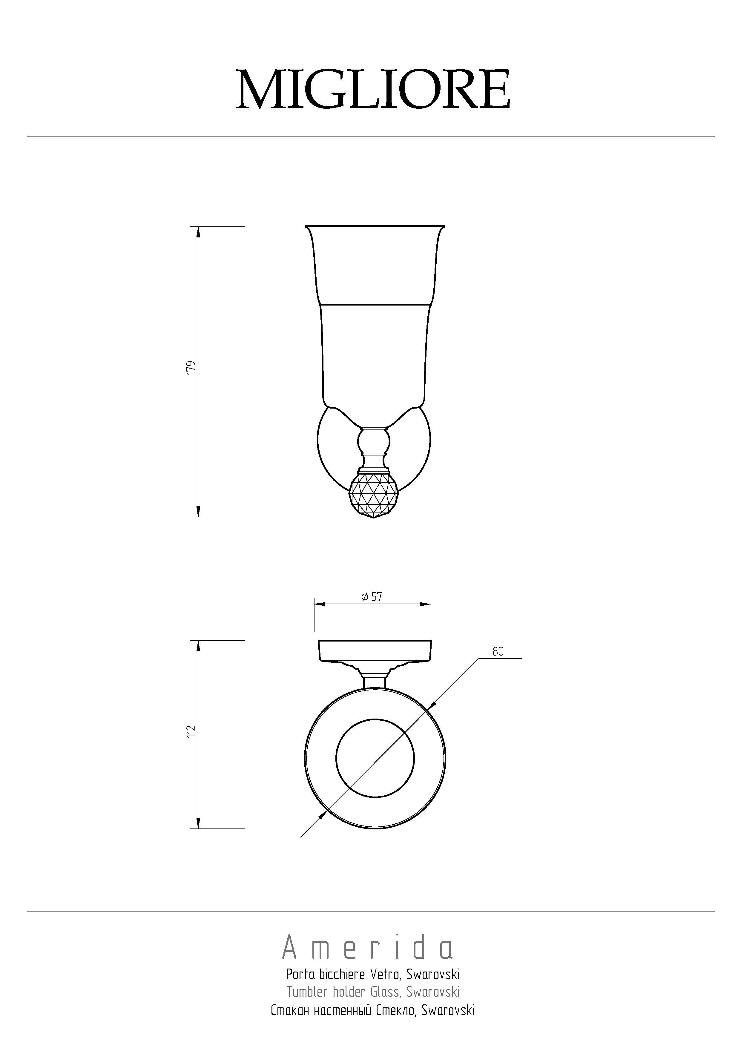 Стакан настенный коллекции AMERIDA бренда MIGLIORE -один из самых необходимых аксессуаров для ванной комнаты. Стакан выполнен в классическом стиле и предназначен для хранения зубных щеток и тюбиков с пастой. Аксессуар украшен кристаллом Сваровски. При необходимости стакан можно вынуть из посадочного места, чтобы помыть