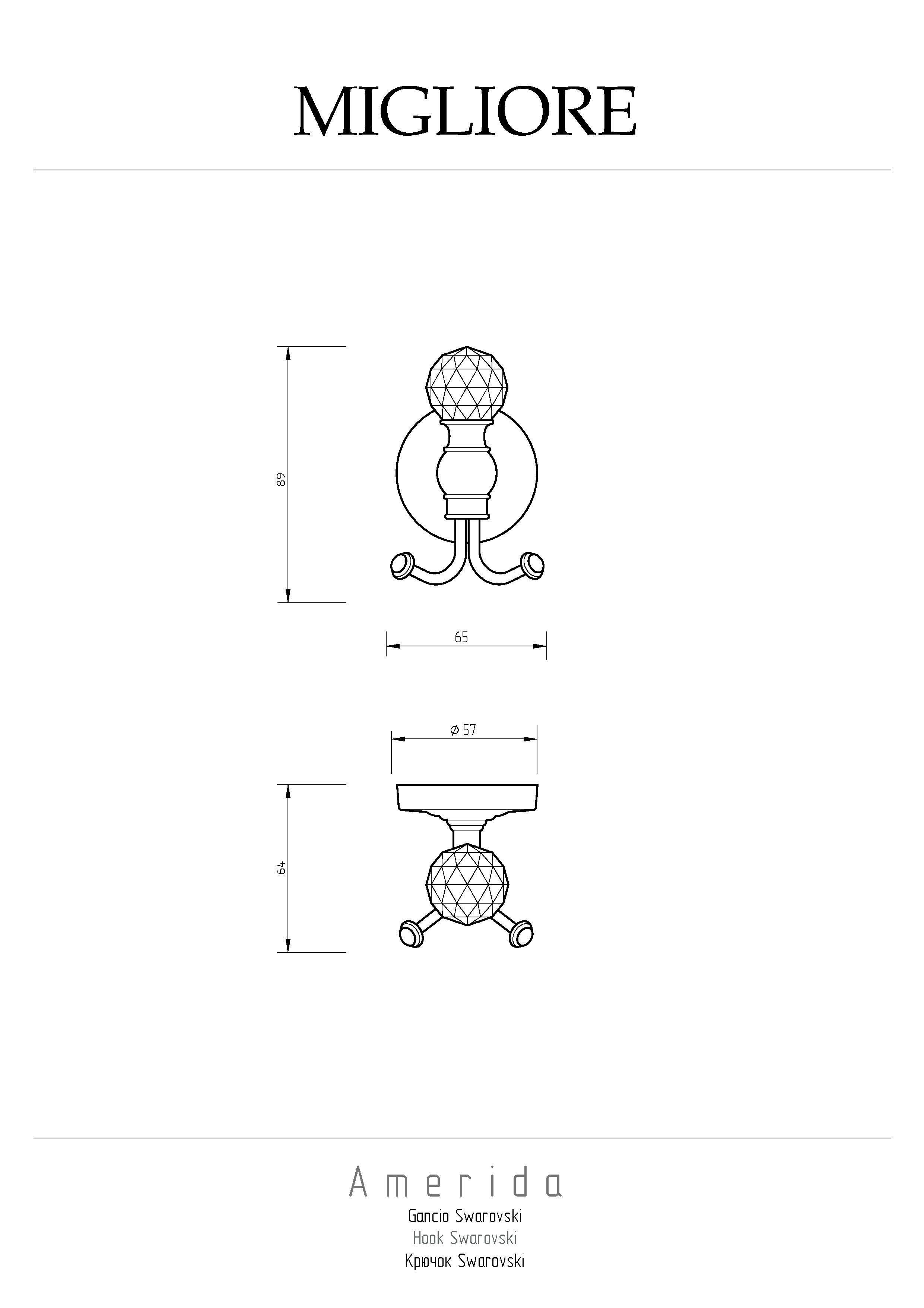 Крючок коллекции AMERIDA бренда MIGLIORE - это незаменимый аксессуар для ванной комнаты. Вы можете использовать данный крючок также в интерьере кухни или других комнат. Аксессуар украшен кристаллом Сваровски.