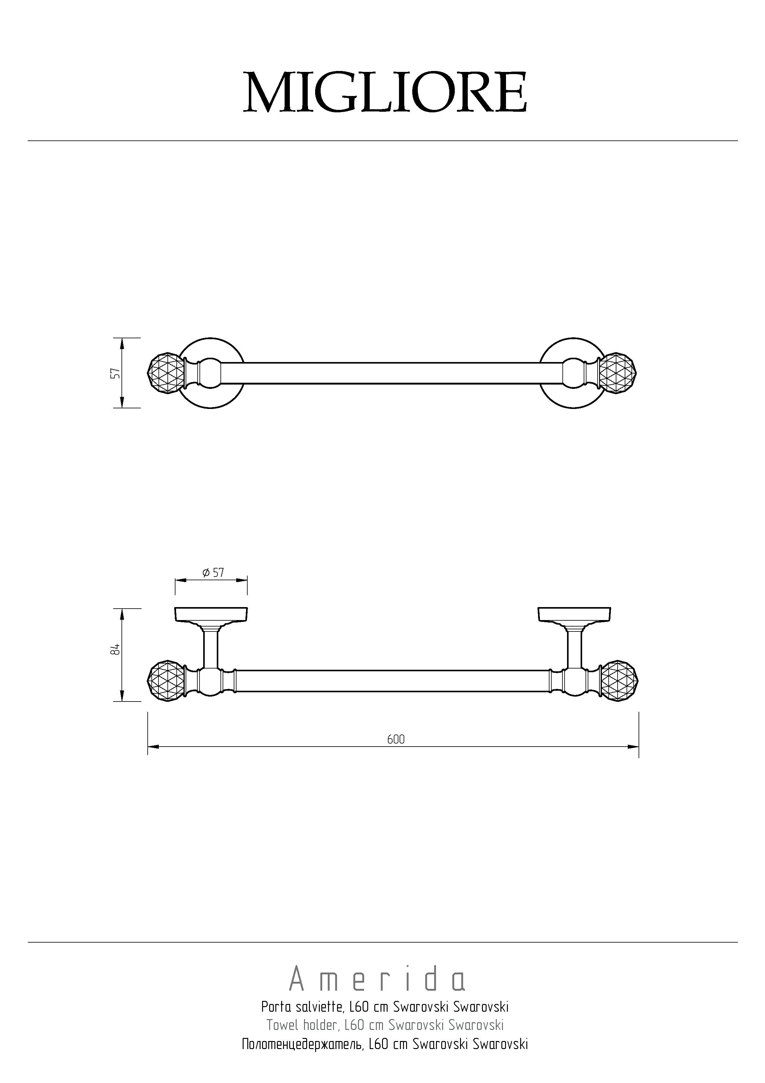 Полотенцедержатель коллекции AMERIDA бренда MIGLIORE - функциональный аксессуар для ванной комнаты. Его длина 60 см, и он подходит для любого полотенца для рук, лица или тела. Аксессуар украшен кристаллами Сваровски.