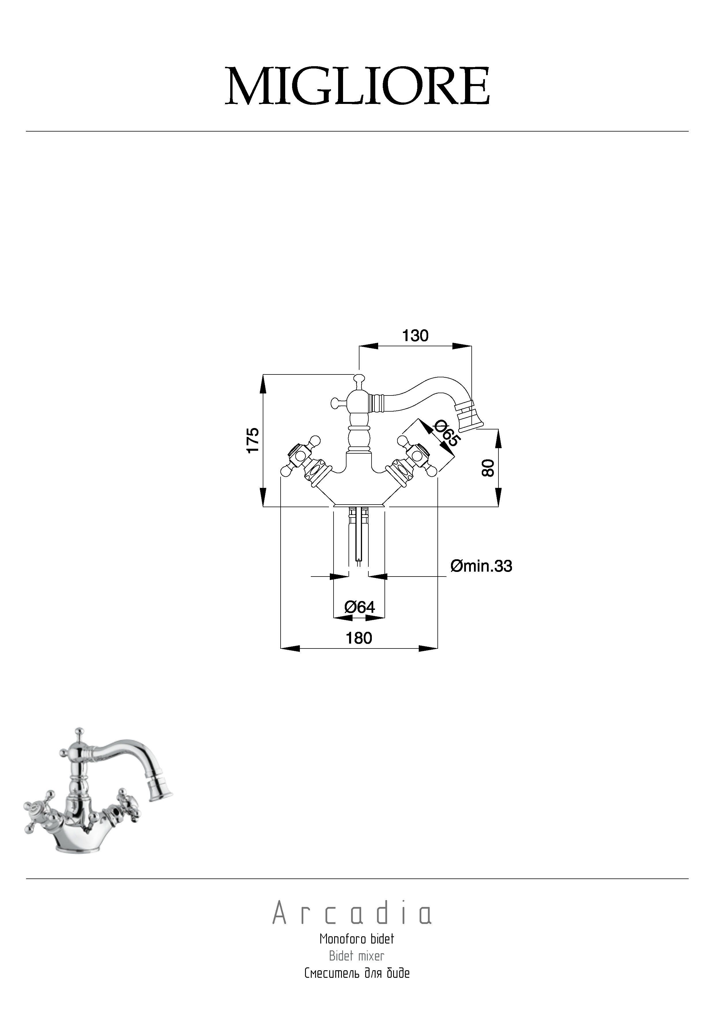 Внимание: золотое покрытие очень деликатное и для ухода рекомендуется использовать чистящее средство бренда MIGLIORE для смесителей и аксессуаров с деликатными покрытиями бронза, золото, медь и протирать мягкой ветошью.