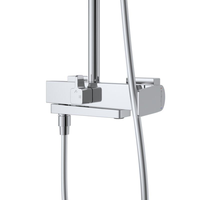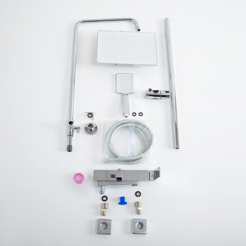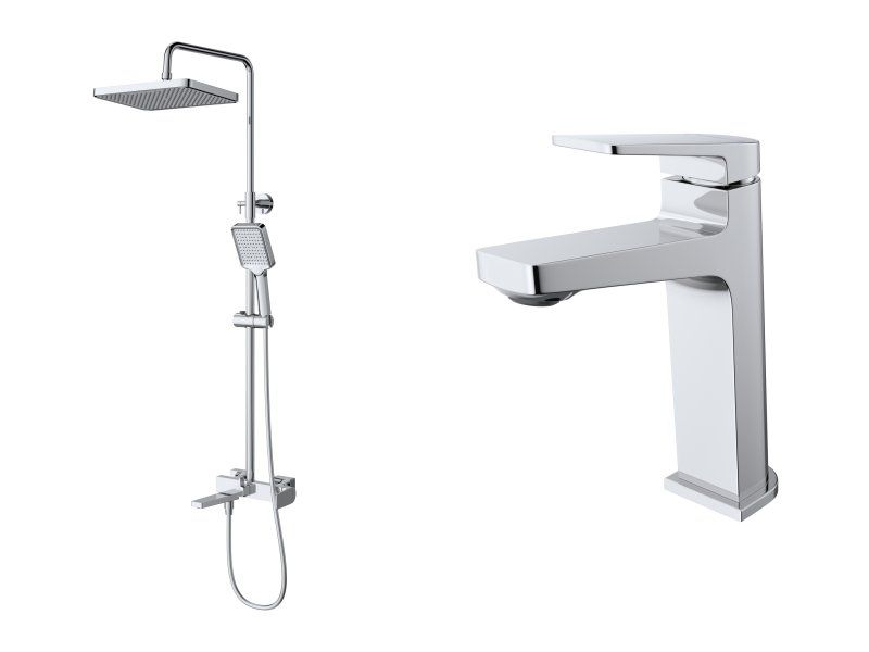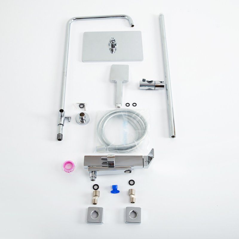 Оснащение: эксцентрики, переключатель потоков, душевой шланг ПВХ длиной 150 см, ручной душ, верхний душ, смеситель с поворотным изливом