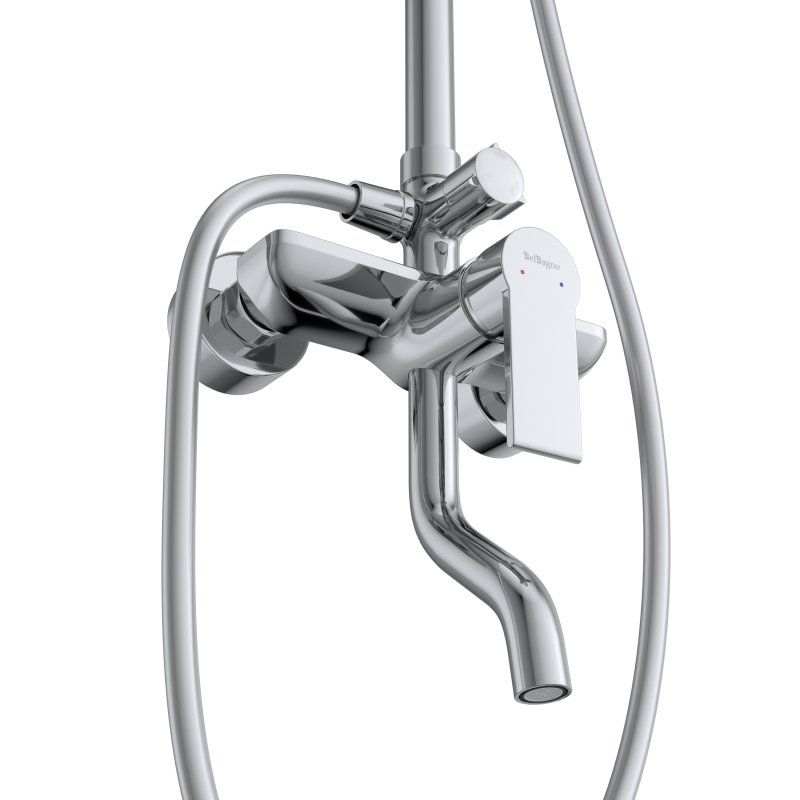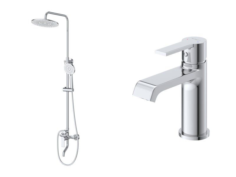 Оснащение: эксцентрики, переключатель потоков, душевой шланг ПВХ длиной 150 см, ручной душ 3-х режимный, верхний душ, смеситель с поворотным изливом