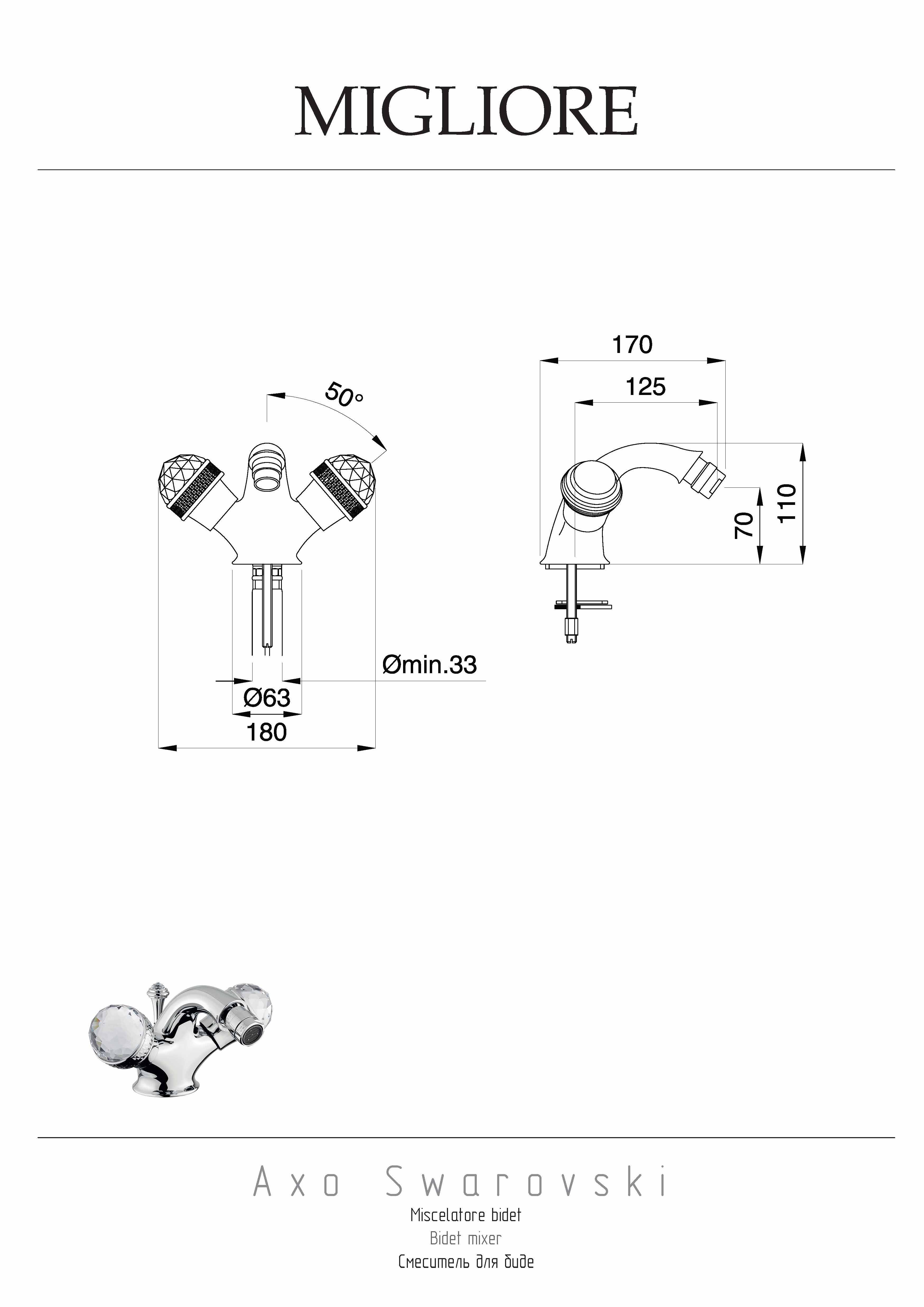 Рекомендуется использовать чистящее средство бренда MIGLIORE для смесителей и аксессуаров с хромированным покрытием.