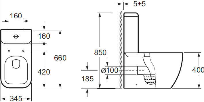 • Жесткая крышка-сиденье из дюропласта с механизмом Soft Close