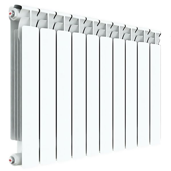 - Секции радиатора выполнены из стальной трубы, покрытой алюминиевым сплавом под высоким давлением. Это обеспечивает качественную теплоотдачу и высокую стойкость к перепадам давления.