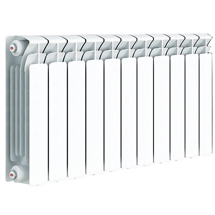 - Секции радиатора выполнены из стальной трубы, покрытой алюминиевым сплавом под высоким давлением. Это обеспечивает качественную теплоотдачу и высокую стойкость к перепадам давления.