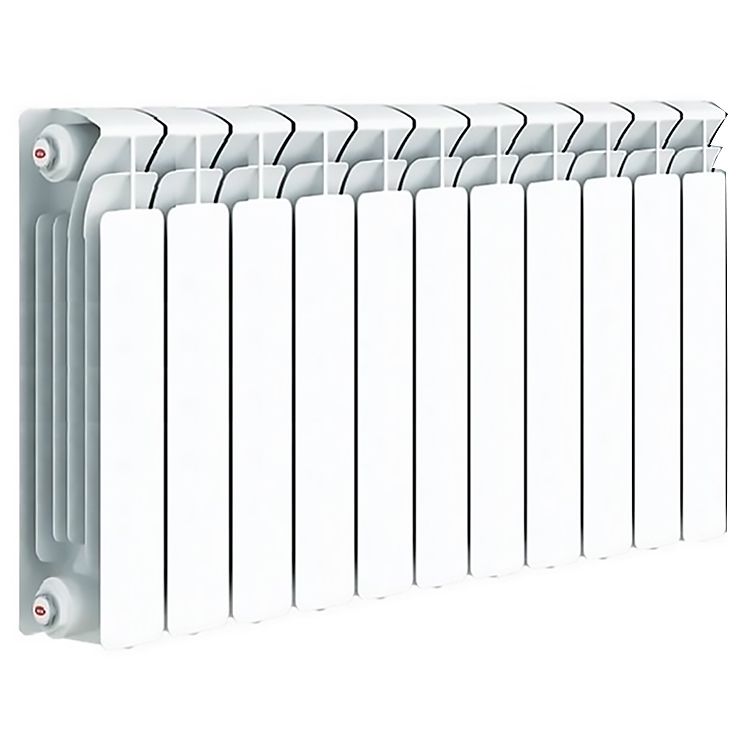 - Секции радиатора выполнены из стальной трубы, покрытой алюминиевым сплавом под высоким давлением. Это обеспечивает качественную теплоотдачу и высокую стойкость к перепадам давления.