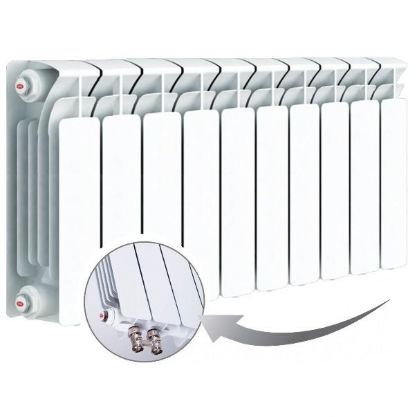 Биметаллический радиатор Rifar Base Ventil 350 с нижним правым подключением. 10 секций.