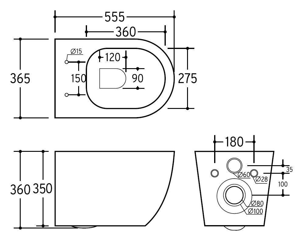 Безободковый подвесной унитаз с горизонтальным выпуском в стену c легкосъемным сиденьем с функцией микролифт в комплекте