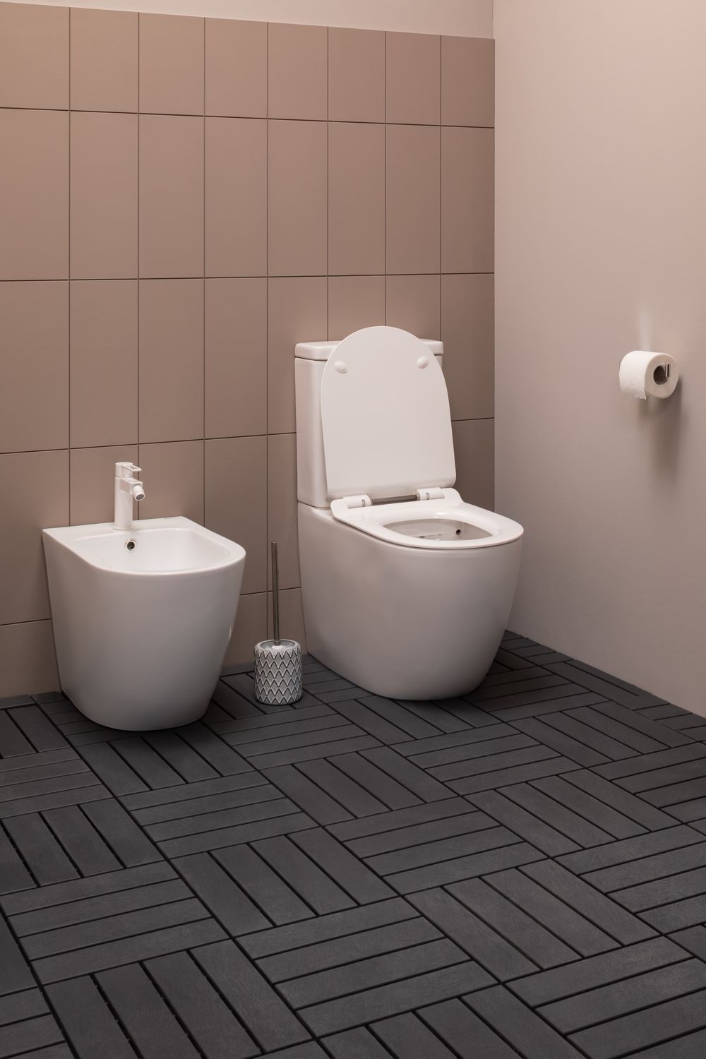 Напольный унитаз Aquanet Rimless Cetus BL-102N-TPT напоминает по своему внешнему виду белоснежный бочонок, что смотрится и футуристично, и очень по-домашнему. Такое изделие скрасит собой любой санузел. И не только скрасит, но и внесет в него современные технологии. Одной из них является конструкция под названием RIMLESS, указывающая на отсутствие ободка, где обычно скапливается грязь. Система смыва в унитазе при отсутствии ободка также является инновационной. Вода омывает стенки изделий довольно эффективно, при этом ни одна капля не выплескивается наружу. Хорошей очистке унитаза способствует также грязеотталкивающее покрытие на эмали. Оно не допускает возможности грязи задерживаться, с идеально гладкой поверхности она смывается вместе с потоком воды. Ну, а инновационность крышки-сиденья, которой комплектуется унитаз, отметят сразу. Бросается в глаза ультратонкий дизайн, что выглядит очень эстетично, а при использовании трудно не отметить плавность работы системы Soft Close.