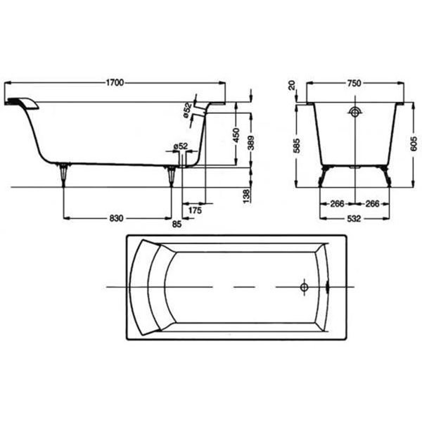 Чугунная ванна Jacob Delafon Biove 170x75 E2930-00.