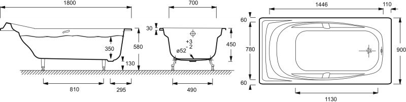 - Смягченные углы с внутренней стороны чаши ванны облегчают уход.