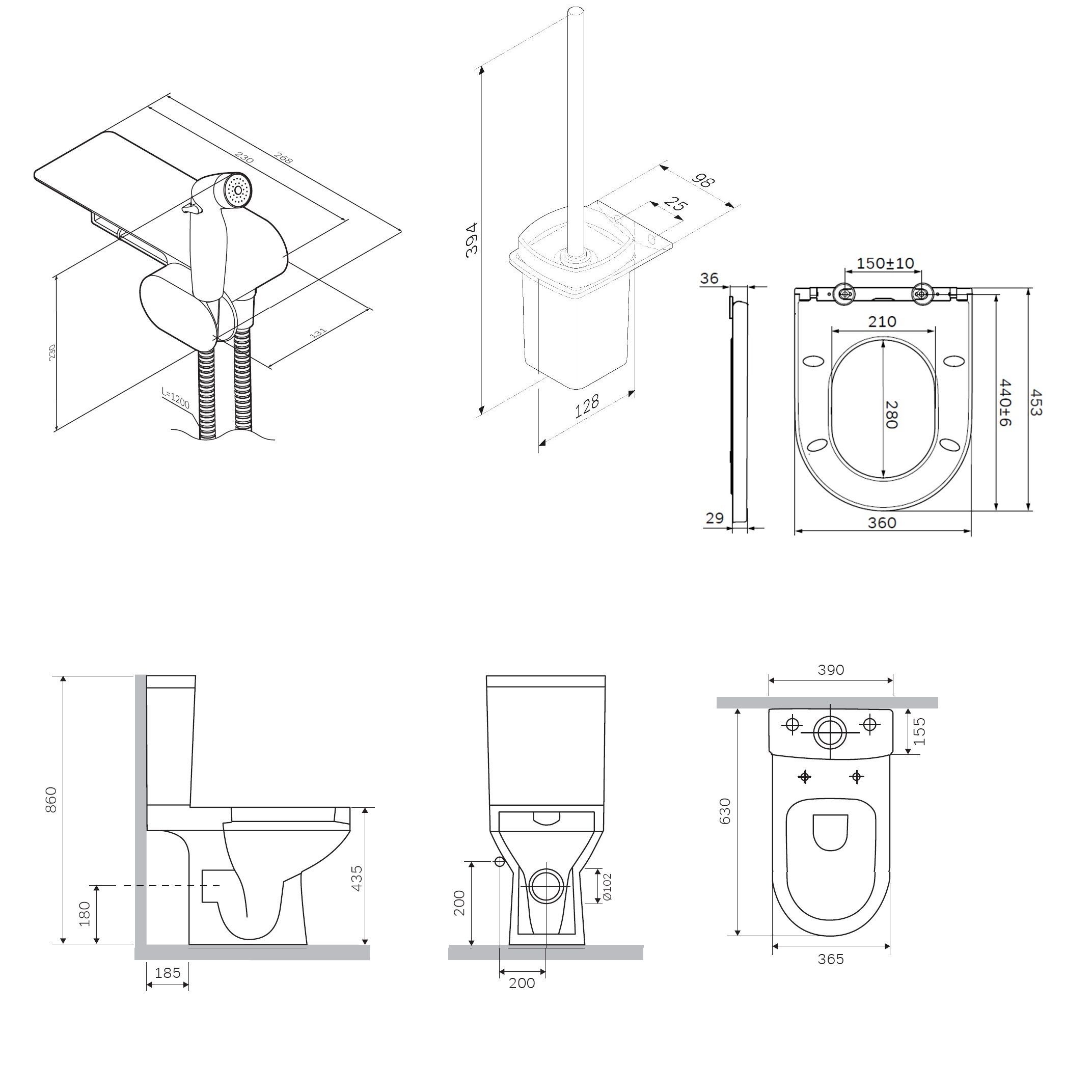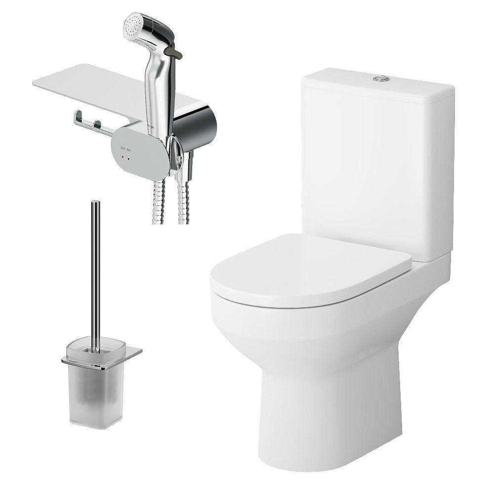 Полностью готовый к установке комплект: напольный унитаз компакт сиденье для унитаза микролифт гигиенический набор с полкой cтойка с туалетной щеткой.