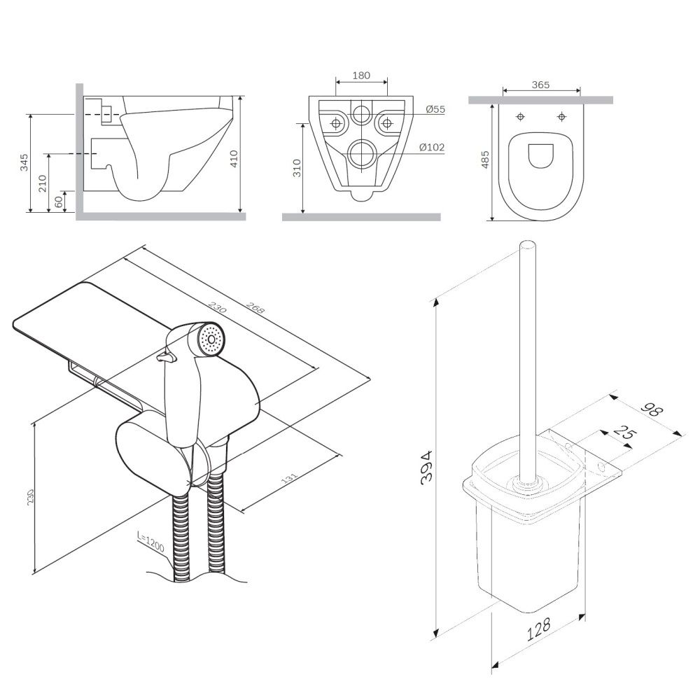 Завершает комплект подвесная cтойка с туалетной щеткой. Стильный аксессуар который идеально впишется в современную ванную комнату и будет радовать глаз каждый день.