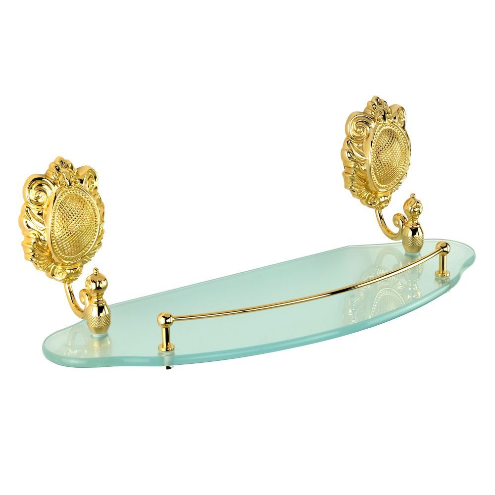 Полка с галереей коллекции CLEOPATRA бренда MIGLIORE длиной 40 см — это функциональный аксессуар для ванной комнаты в классическом стиле. Полка вешается над раковиной. На ней можно разместить все необходимые косметические средства, которые будут всегда у вас под рукой. Ограничительпо переднему краю полки не позволит упасть тюбикам и предметам. Стекло легко чистится тряпочкой и/или средством для чистки стекол.