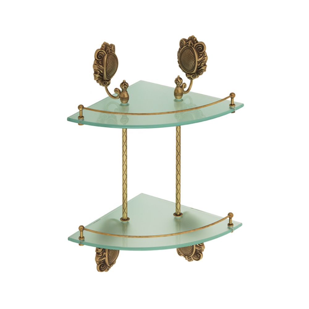 Полка с галереей угловая двойная коллекции CLEOPATRA бренда MIGLIORE — это функциональный аксессуар для ванной комнаты в классическом стиле. На ней можно разместить все необходимые косметические средства, которые будут всегда у вас под рукой. Ограничительпо переднему краю полки не позволит упасть тюбикам и предметам. Стекло легко чистится тряпочкой и/или средством для чистки стекол.