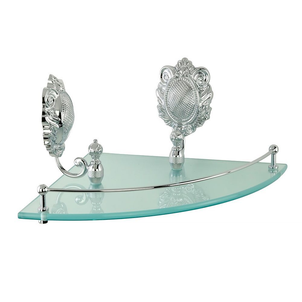 Полка с галереей угловая коллекции CLEOPATRA бренда MIGLIORE — это функциональный аксессуар для ванной комнаты в классическом стиле. На ней можно разместить все необходимые косметические средства, которые будут всегда у вас под рукой. Ограничительпо переднему краю полки не позволит упасть тюбикам и предметам. Стекло легко чистится тряпочкой и/или средством для чистки стекол.