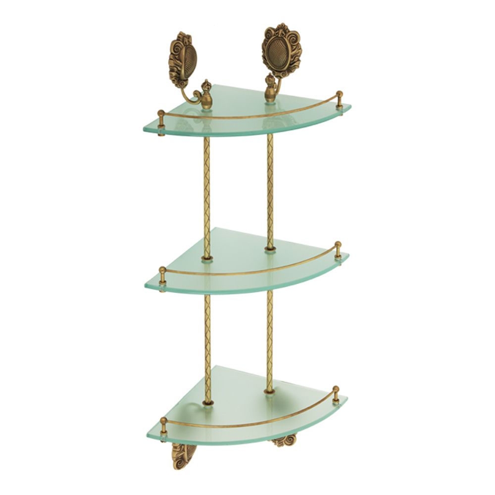 Полка с галереей угловая тройная коллекции CLEOPATRA бренда MIGLIORE — это функциональный аксессуар для ванной комнаты в классическом стиле. На ней можно разместить все необходимые косметические средства, которые будут всегда у вас под рукой. Ограничительпо переднему краю полки не позволит упасть тюбикам и предметам. Стекло легко чистится тряпочкой и/или средством для чистки стекол.