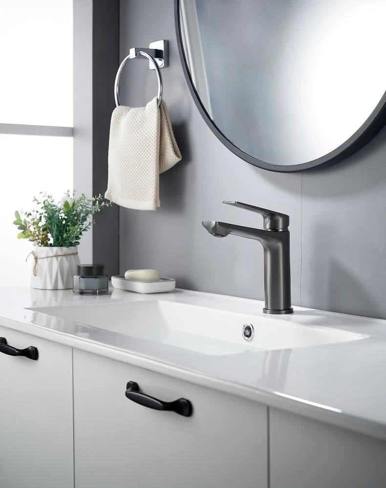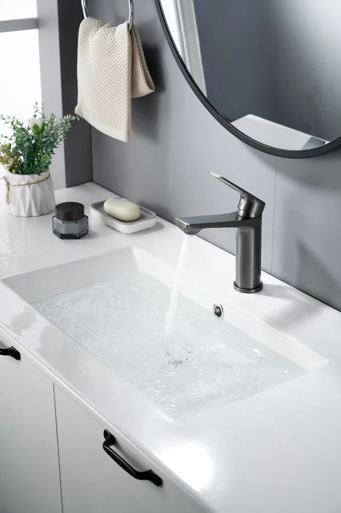 Изготовленный из прочной латуни, этот кран для умывальника обеспечивает долговечность и надёжность в использовании, а также устойчивость к механическим повреждениям. Механизм смесителя для раковины KN-60/GM основан на керамическом картридже с рычажным управлением, что гарантирует лёгкость и точность регулировки температуры и напора воды.