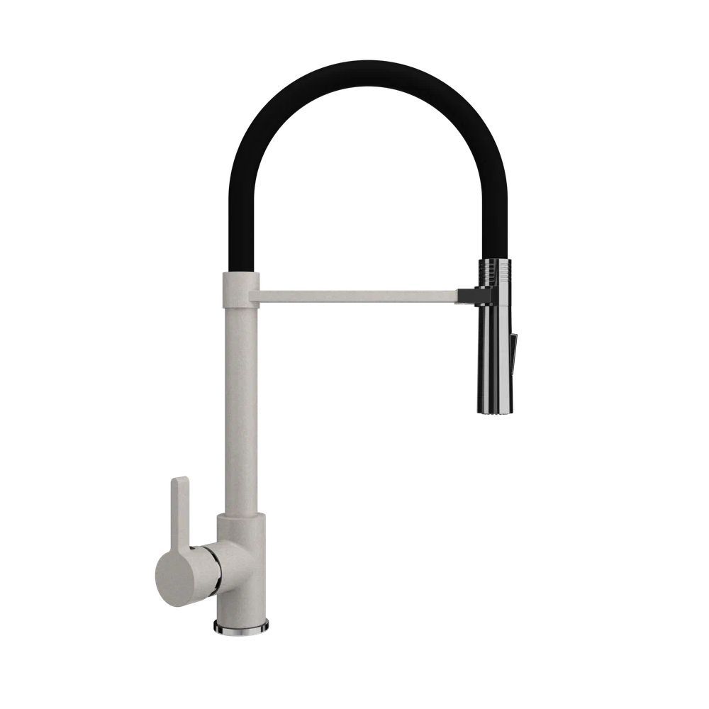 Смеситель ULGRAN U-024 – это стильный и современный кухонный смеситель с высоким гибким изливом черного цвета. Материал корпуса выполнен из высококачественной латуни, а окрашивание под «искусственный камень» выполняется на собственном производстве, что позволяет идеально попасть в цвет моек ULGRAN.