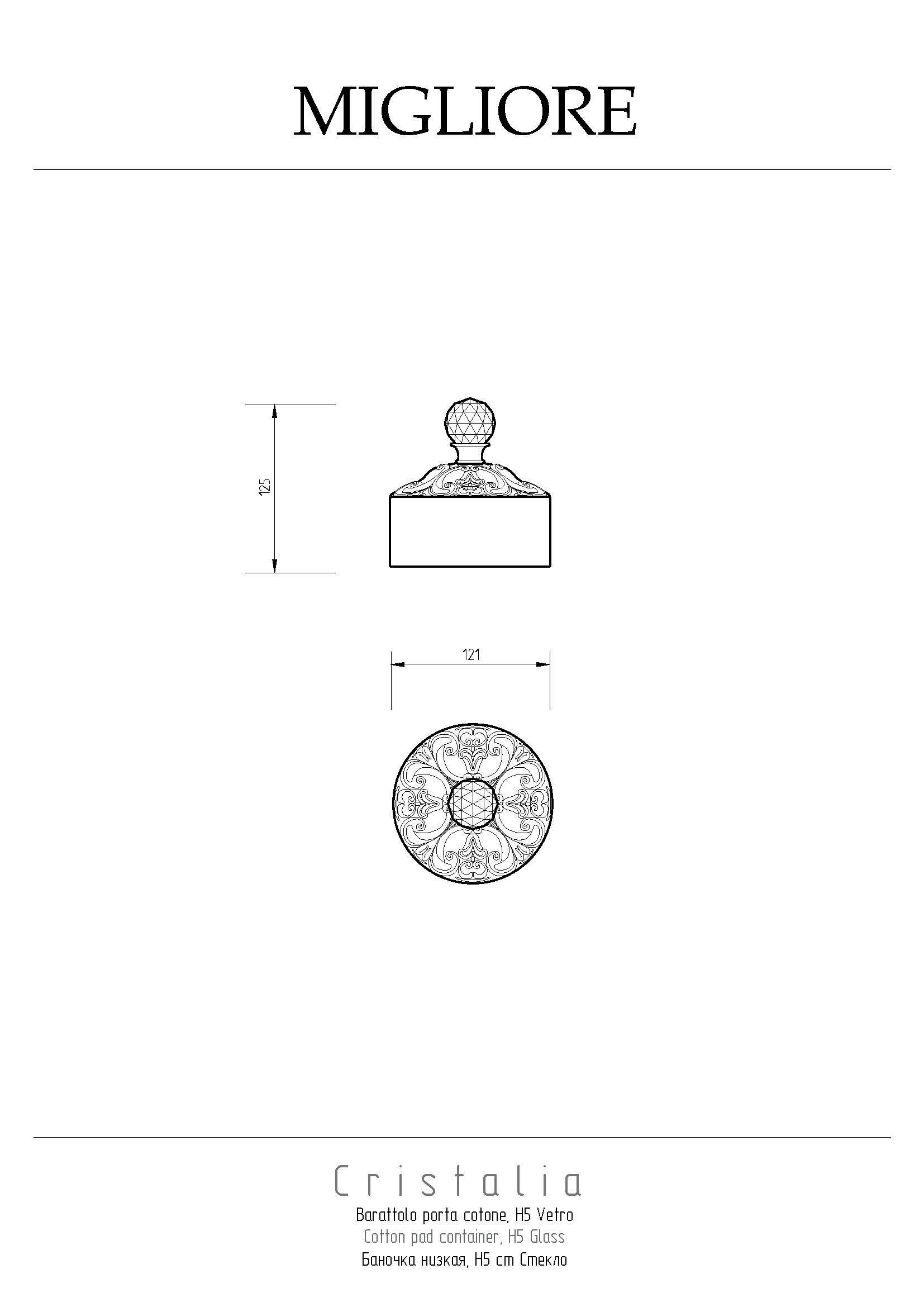 Баночка настольная серии CRISTALIA бренда MIGLIORE предназначена для хранения ватных дисков, но в ней также можно любые различные предметы, и использовать ее не только в ванной комнате. Стекло баночки изготовлено вручную с добавлением фольги из золота, которая, растворяясь в стекле, образует богатый и красивый декор. Аксессуар украшен кристаллом Сваровски.