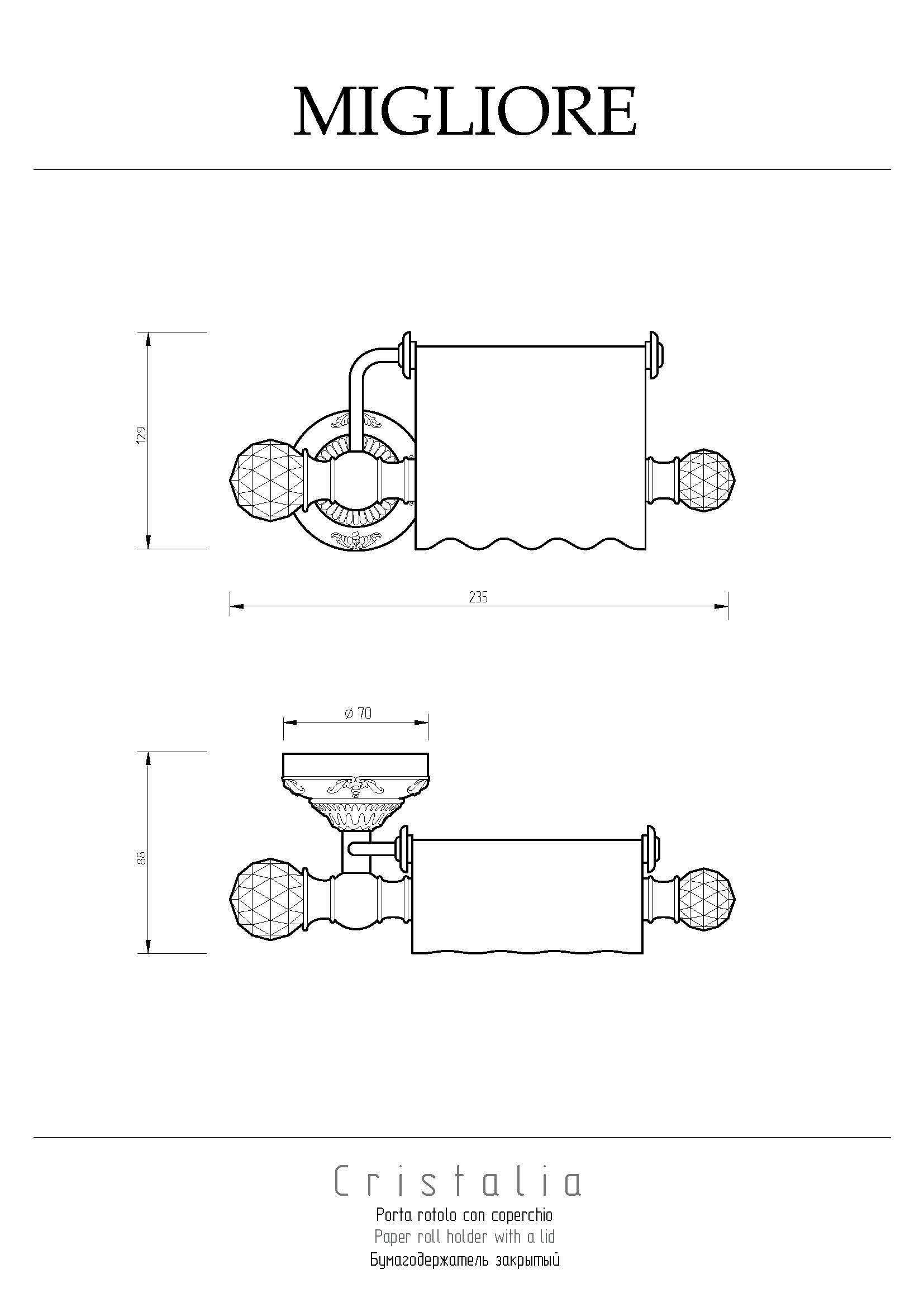 Бумагодержатель коллекции CRISTALIA бренда MIGLIORE — это один из необходимых аксессуаров для ванной комнаты. Аксессуар украшен кристаллами Сваровски.